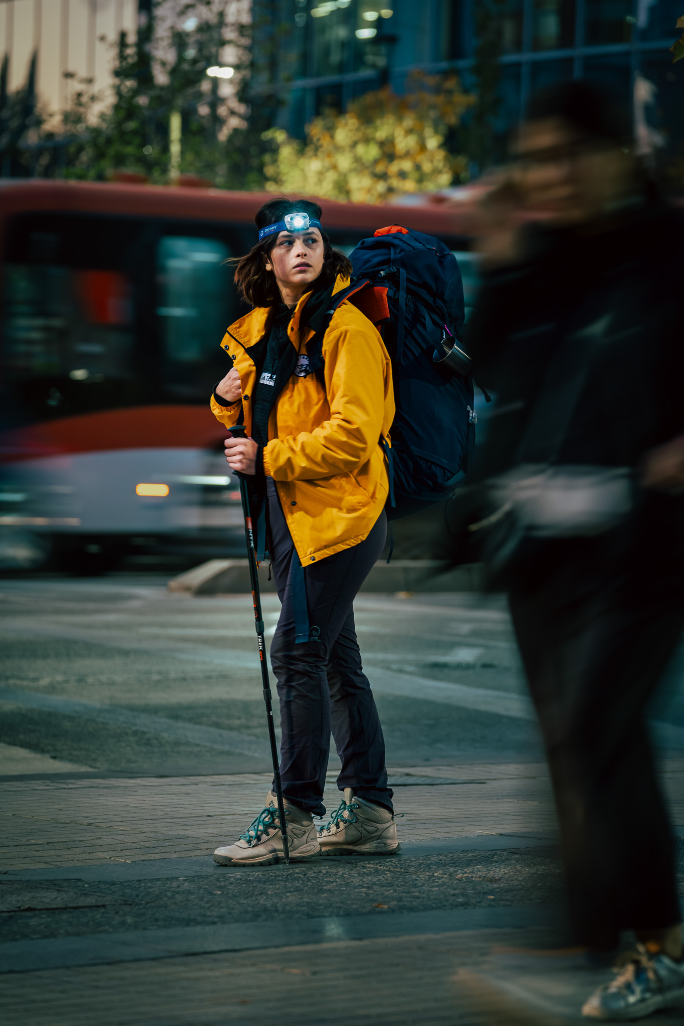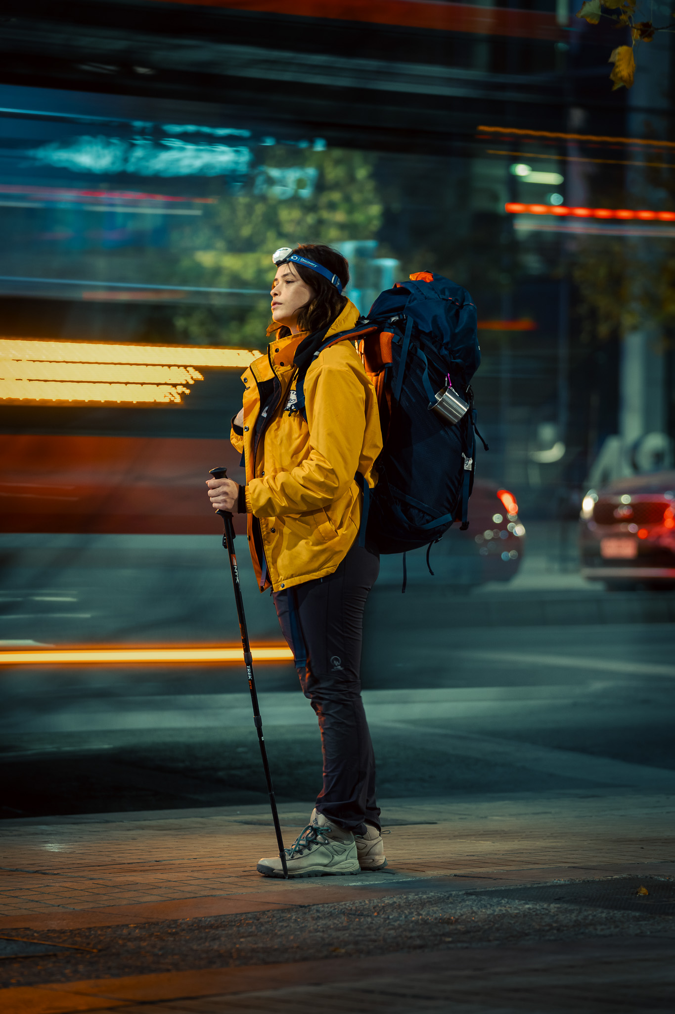 Esta propuesta de autorretrato es un testimonio visual del choque entre dos mundos: la apacible llamada de la montaña y el estruendo de la vida citadina. Busco personificar el anhelo de aventura y libertad, aun en medio del caos urbano. Resaltando la dualidad de la experiencia migratoria, donde la búsqueda de nuevas fronteras se entrelaza con la lucha por encontrar un lugar al cual pertenecer.